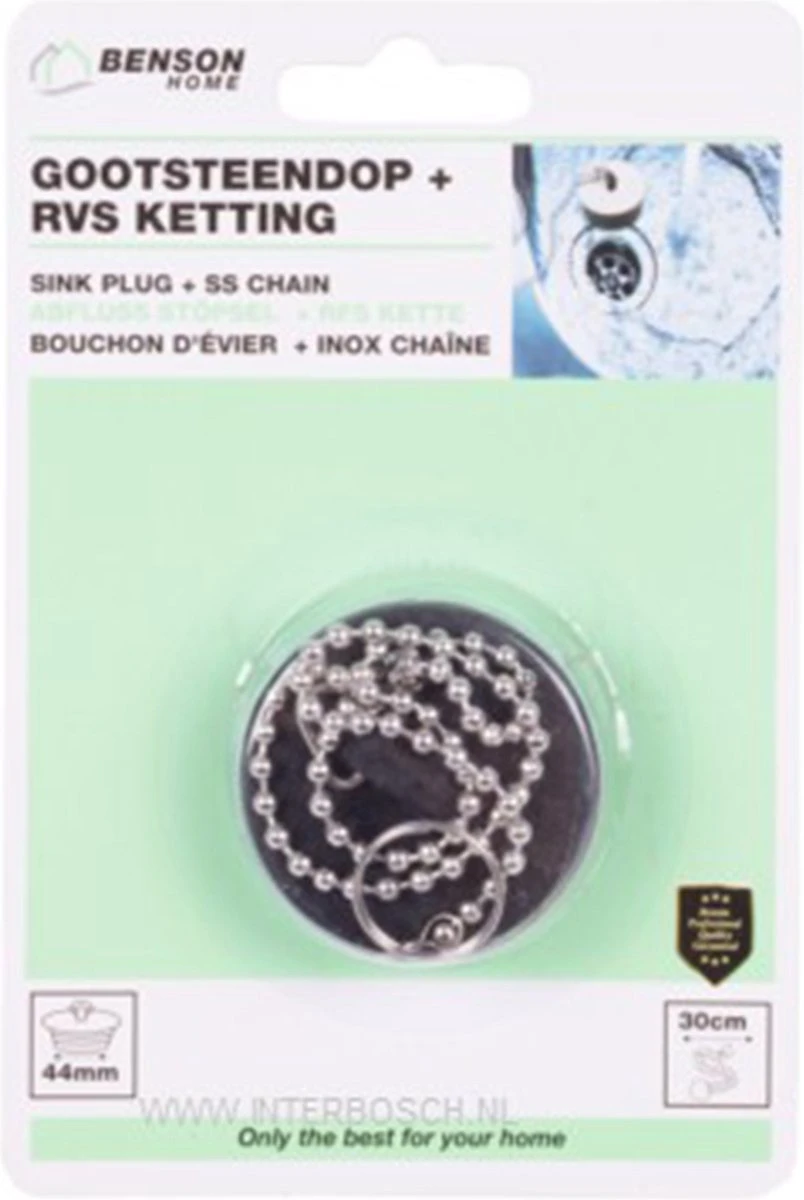 Benson aanrecht wasbak gootsteen afsluitdoppen gemaakt van rubber. gootsteen dop met RVS ketting van 30cm om je wasbak/wastafel in keuken en badkamer af te sluiten.